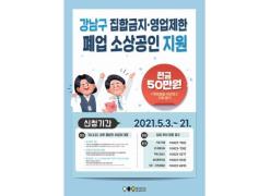 [지원대상] 집합금지·영업제한·인원제한 업종으로 2020년 3월 22일(강화된 사회적 거리두기 개시일) 이후 폐업한 소상공인-2021년 강남구 폐업 소상공인 지원사업의 기수혜자 지원 제외