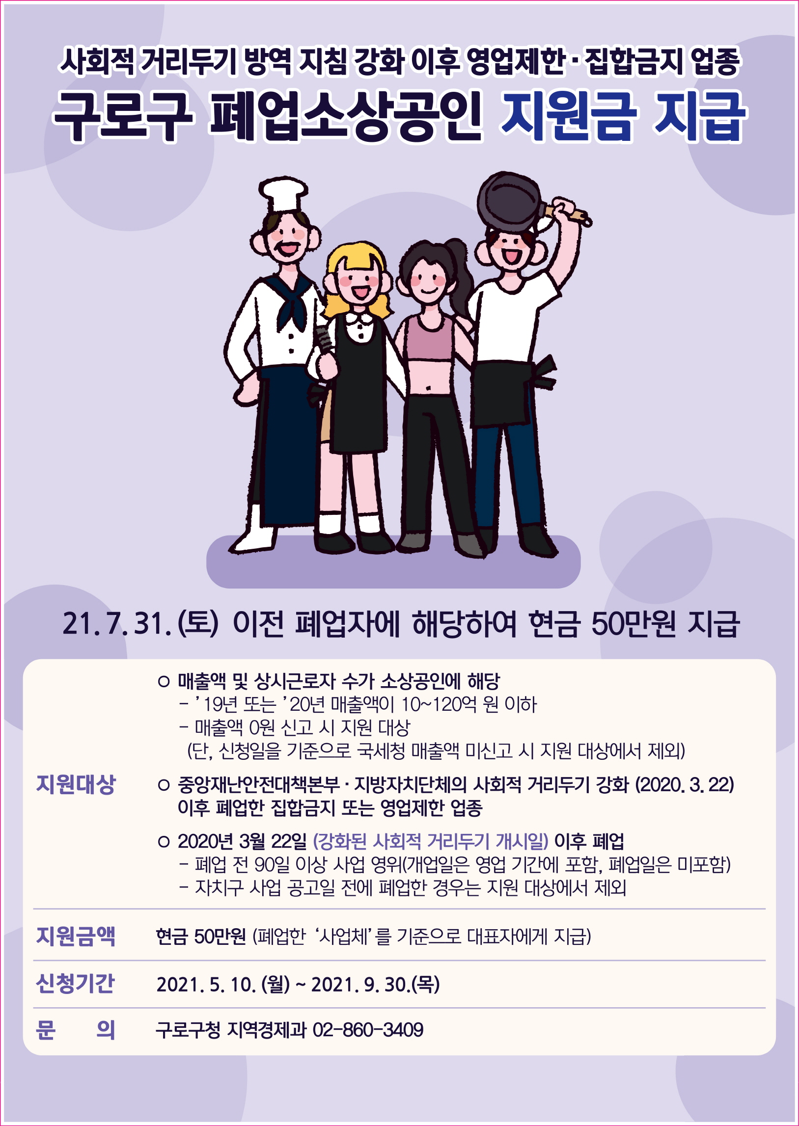 [신청방법] 집합금지 또는 영업시간 제한, 시설인원 제한 업종 관할 부서 방문 신청[지불방식]자격요건 확인 등을 심사하여 대표자 명의계좌로 순차지급