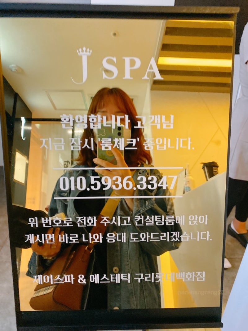 구리스킨케어 J스파 제가 방문한 매장은 구리시 롯데백화점 지하 2층에 위치한 J스파였습니다. 이번이 세 번째 방문이었습니다. 주차장에서 바로 매장으로 들어갈 수도 있고, 에스컬레이터를 타고 내려가면 쉽게 매장까지 갈 수 있어요!