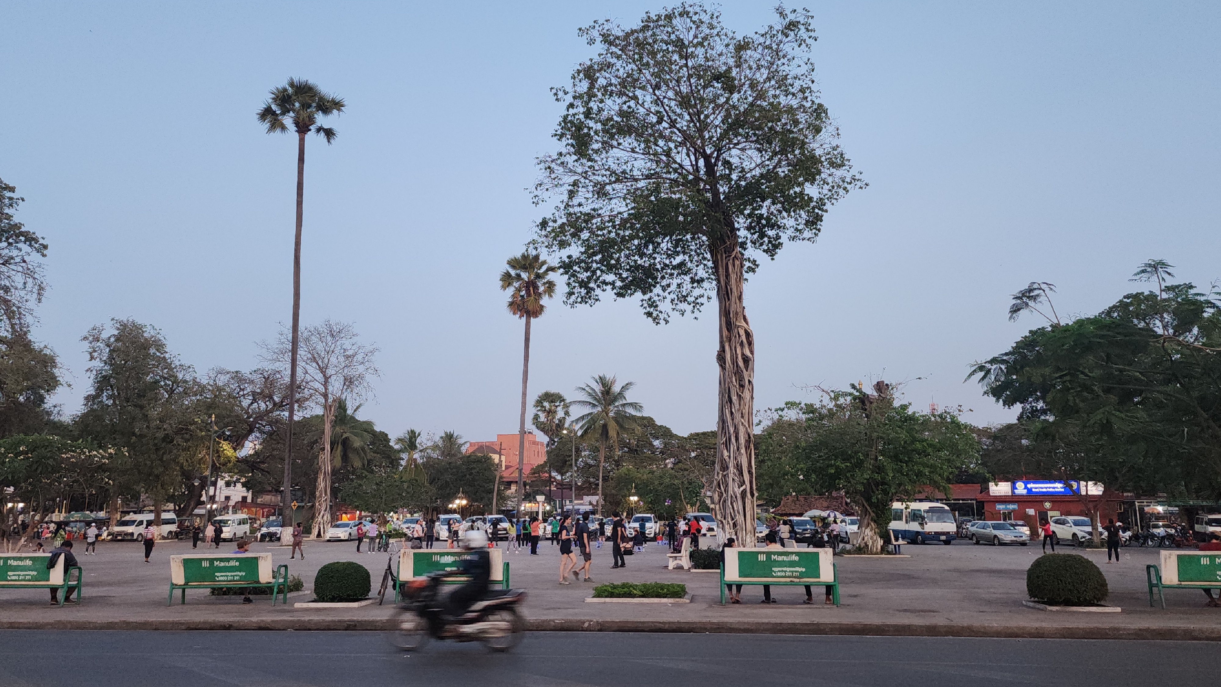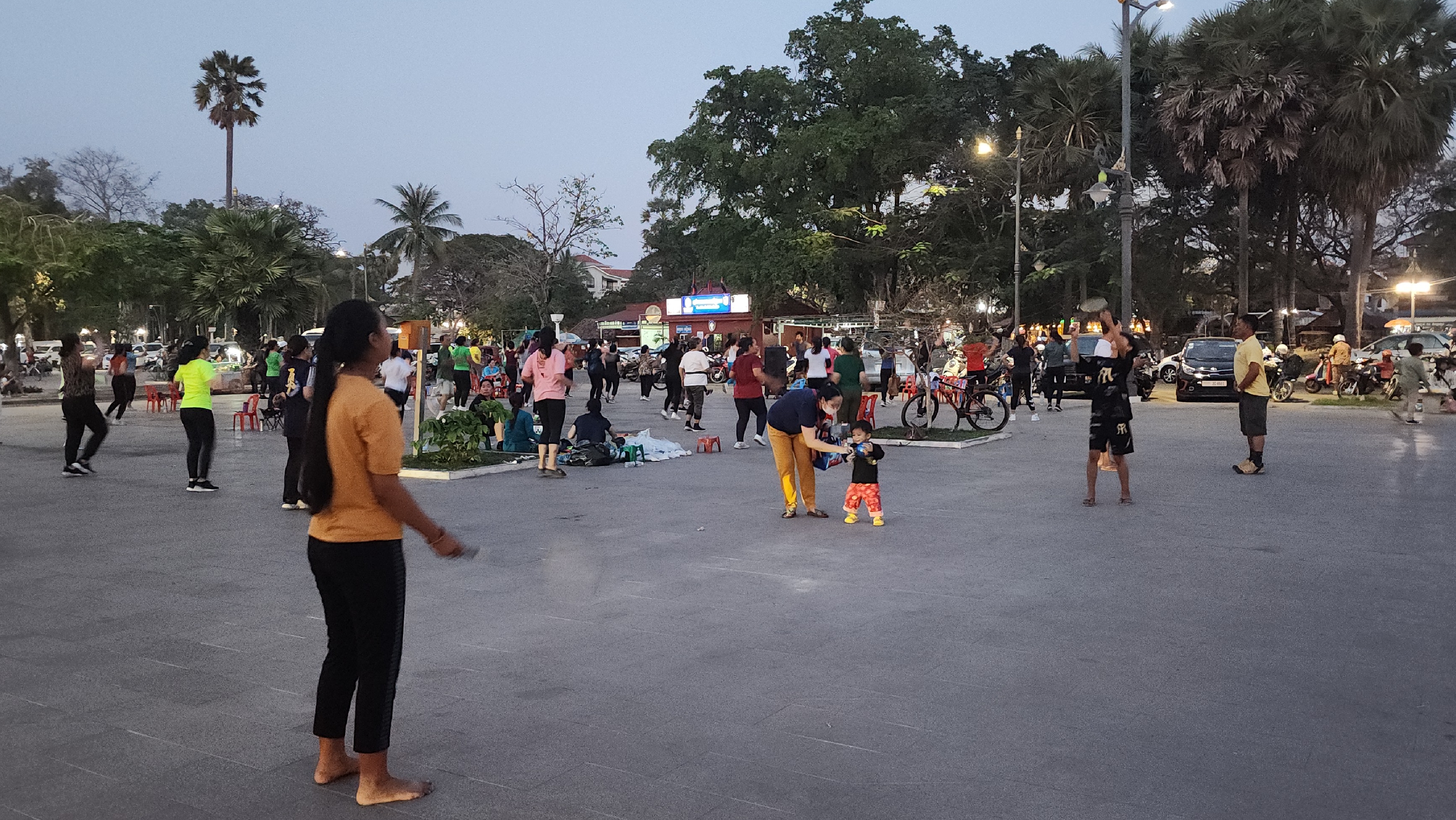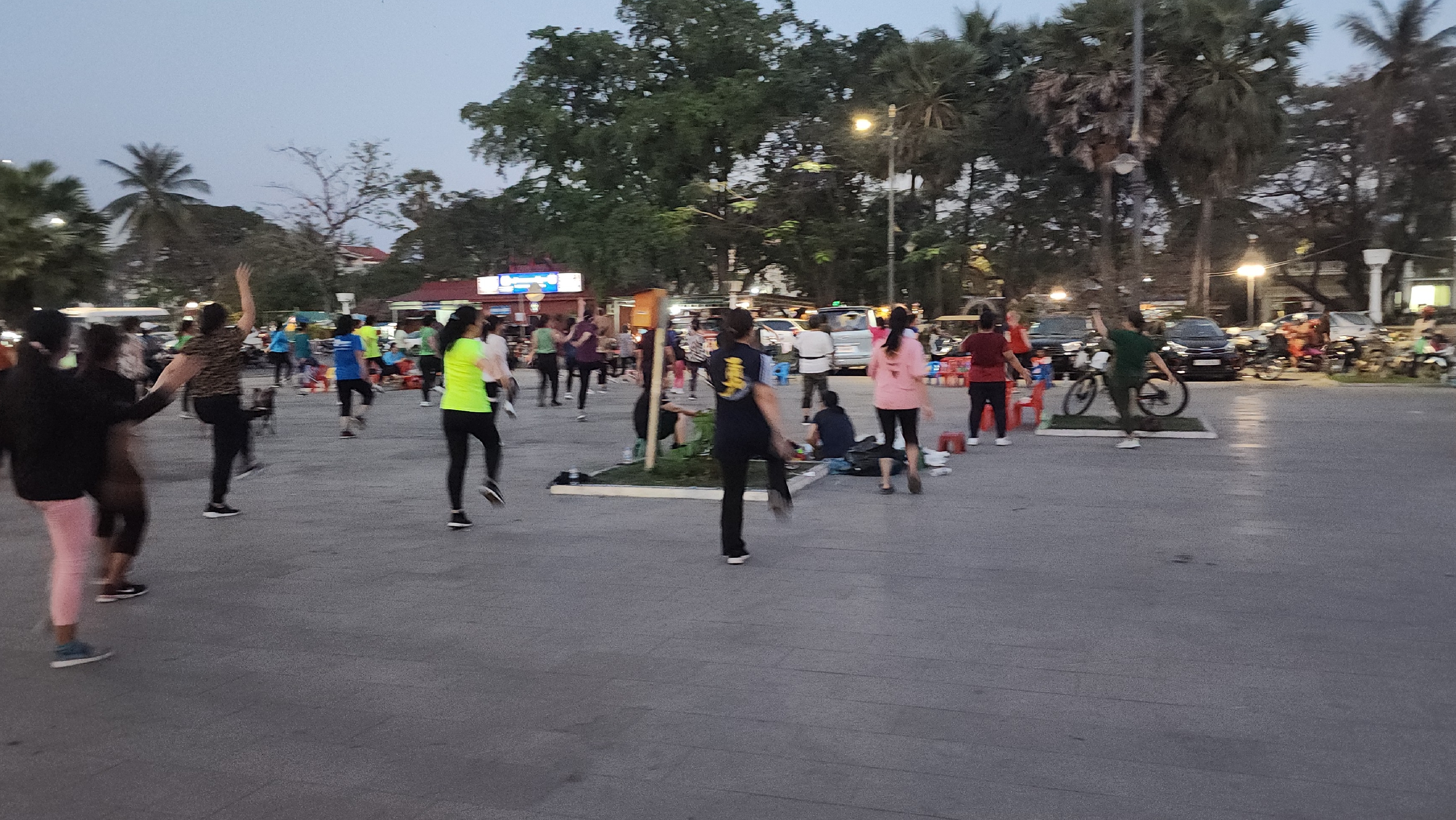 길 건너편에는 배트파크 자동차들이 다니는 큰 광장이 있고 해가 진 초저녁에 많은 사람들이 나와서 에어로빅을 즐겼다.